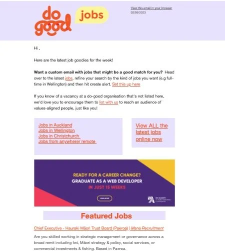 Do Good Jobs is visited by a variety of jobseekers from senior-level managers of medium to large for purpose organisations in New Zealand, to those seeking entry-level roles in the sector.