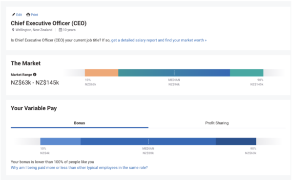 You’ll note there is a big gap between the top and bottom for this role. I recommend looking at the market median. This is a useful starting point to check competitiveness as the median is less susceptible to extreme high and low salaries.