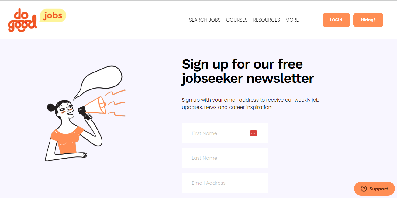 If you’d prefer to just hear about the latest job listings from organisations you love, you can also set up an alert for any new jobs they post. Head to our organisations page which lists all the organisations with current vacancies on Do Good Jobs. Find your favourites and then create a custom alert for new job vacancies they post.